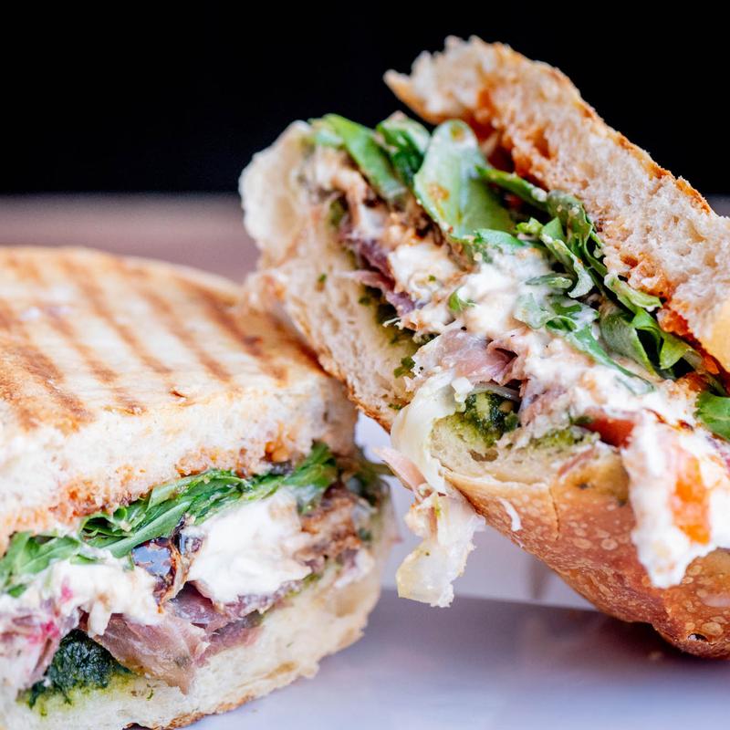 House roasted turkey breast, brie, caramelized onion, bacon, dijonnaise, arugula